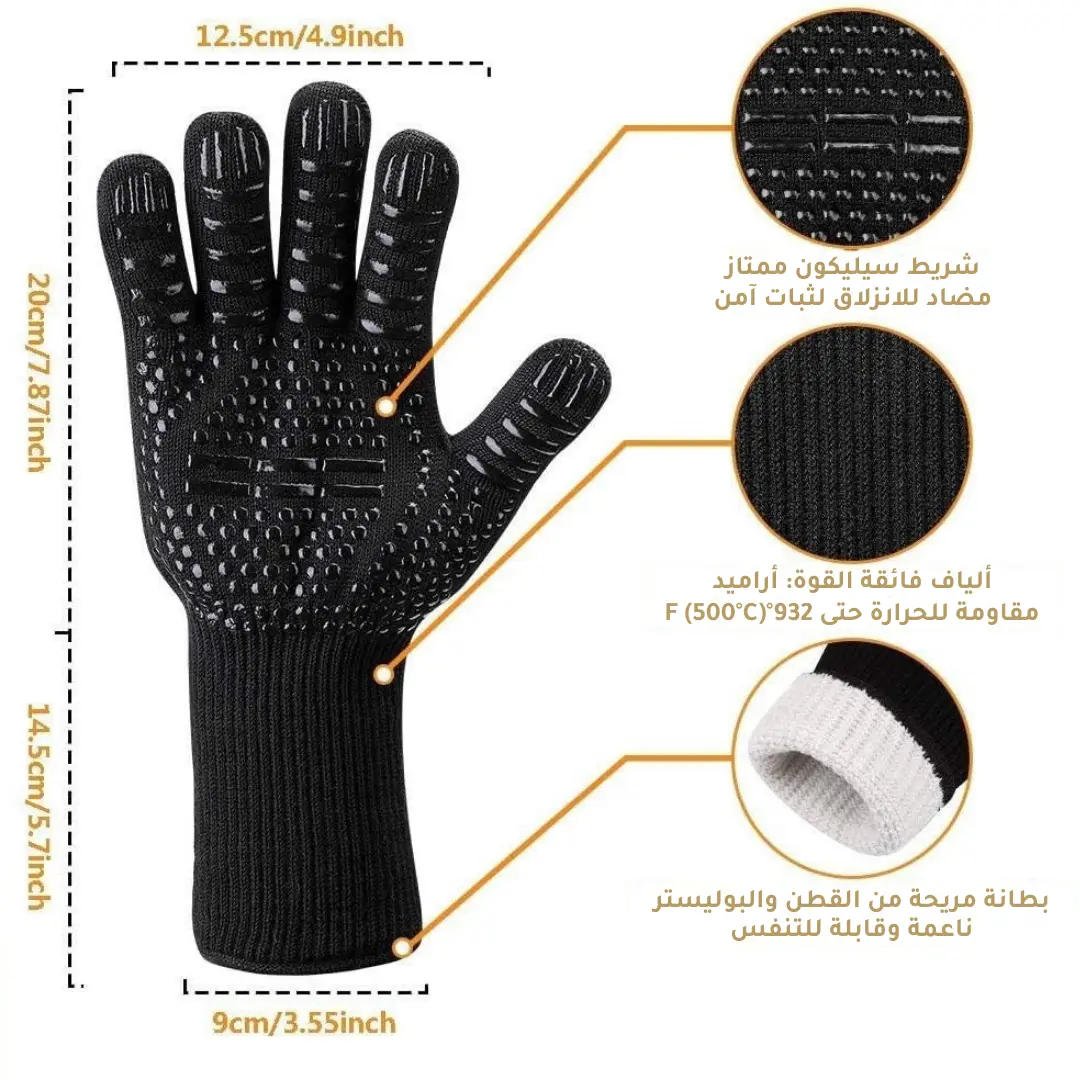 – تتحمل حتى 900°C لحماية يديك من الحرارة العالية.