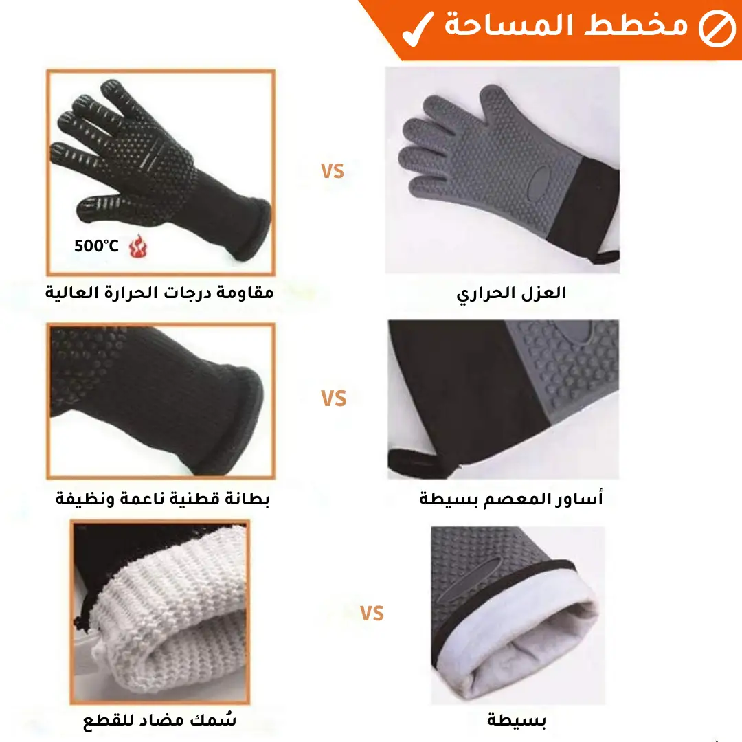 قفازات مقاومة للحرارة تغطي يديك بالكامل لتوفر لك الحماية المثالية في جميع الأوقات.